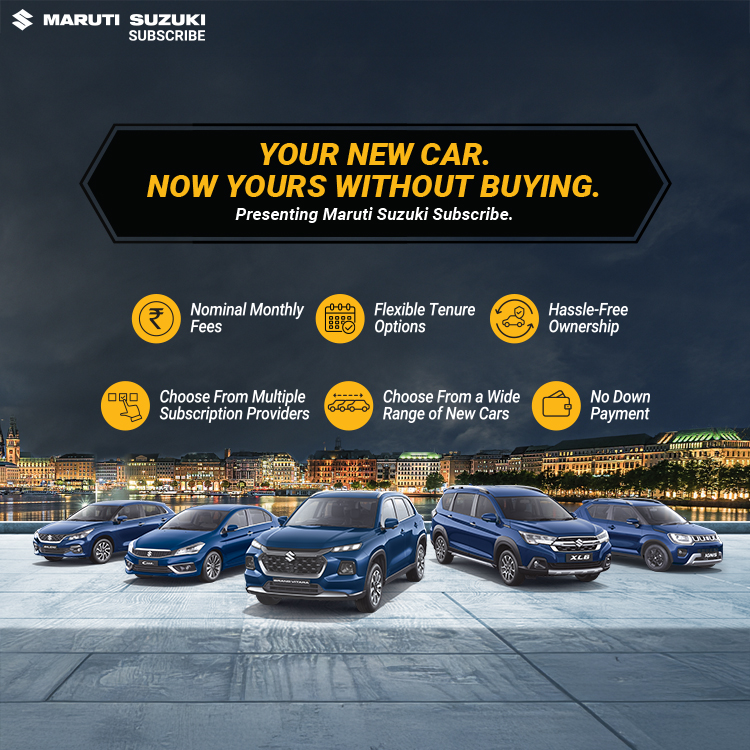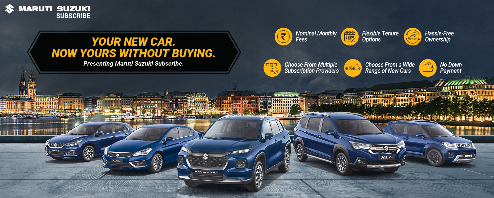 Maruti Suzuki Subscribe enables all customers to enjoy driving their preferred Maruti Suzuki cars without having to deal with all the financial responsibilities that come with owning a car.All you need to do is opt for a monthly subscription plan at a fixed monthly fee, which includes the routine maintenance and insurance costs, and choose a flexible tenure. At Technoy Motors in, Govardhan Villas Udaipur, Udaipur, all Hatchback, Sedan, SUV, the MUV models line-up includes Baleno, Invicto, EVitara, Jimny, Ciaz, Ignis, Fronx, Grand Vitara, XL6. Here, you will enjoy Maruti Suzuki Subscribe benefits such as: